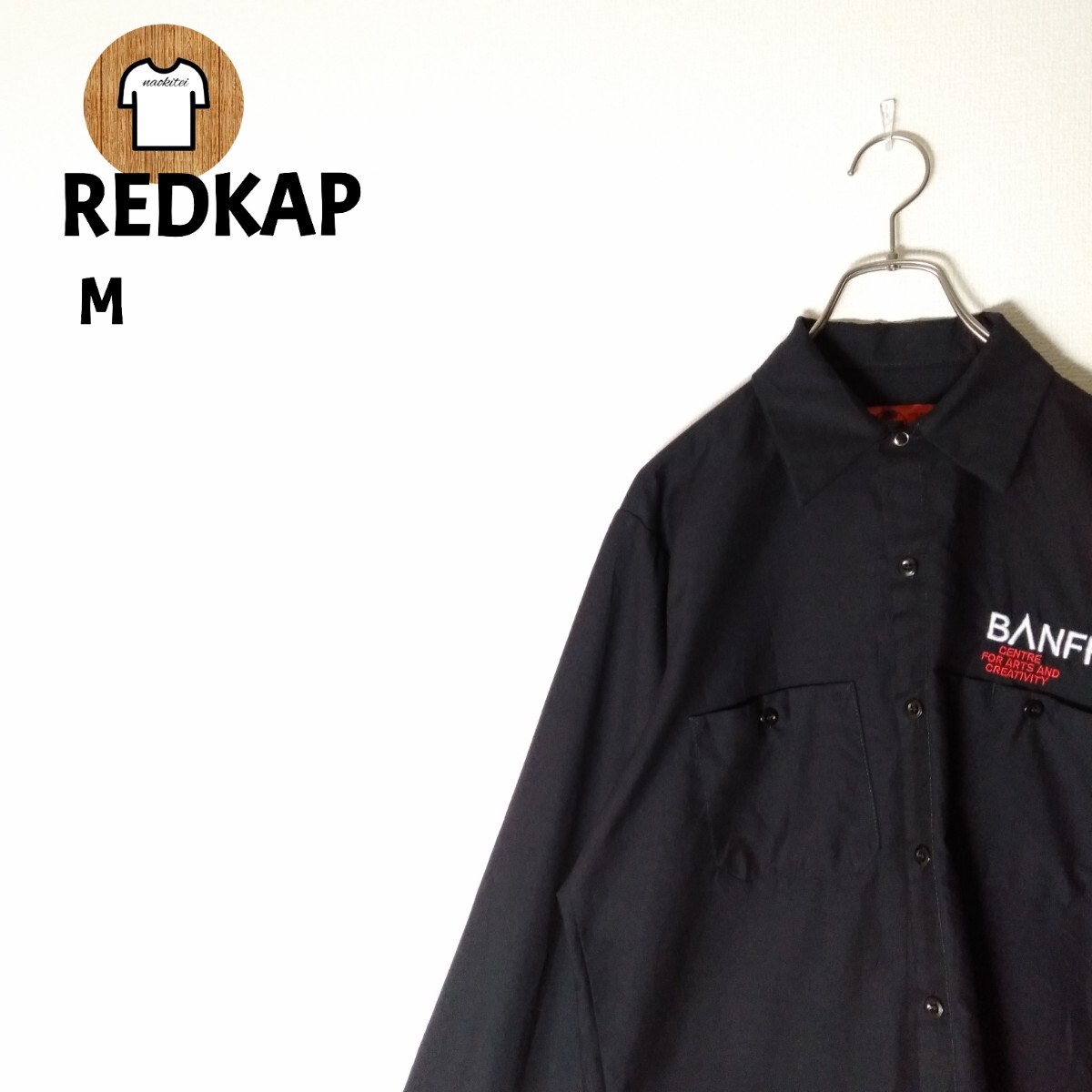 - REDKAP ワークシャツ M 刺繍ロゴ 企業系 海外古着 2ポケット B45 ダブルポケット 古着 ダークカラー メンズ レッドキャップ BANFF
