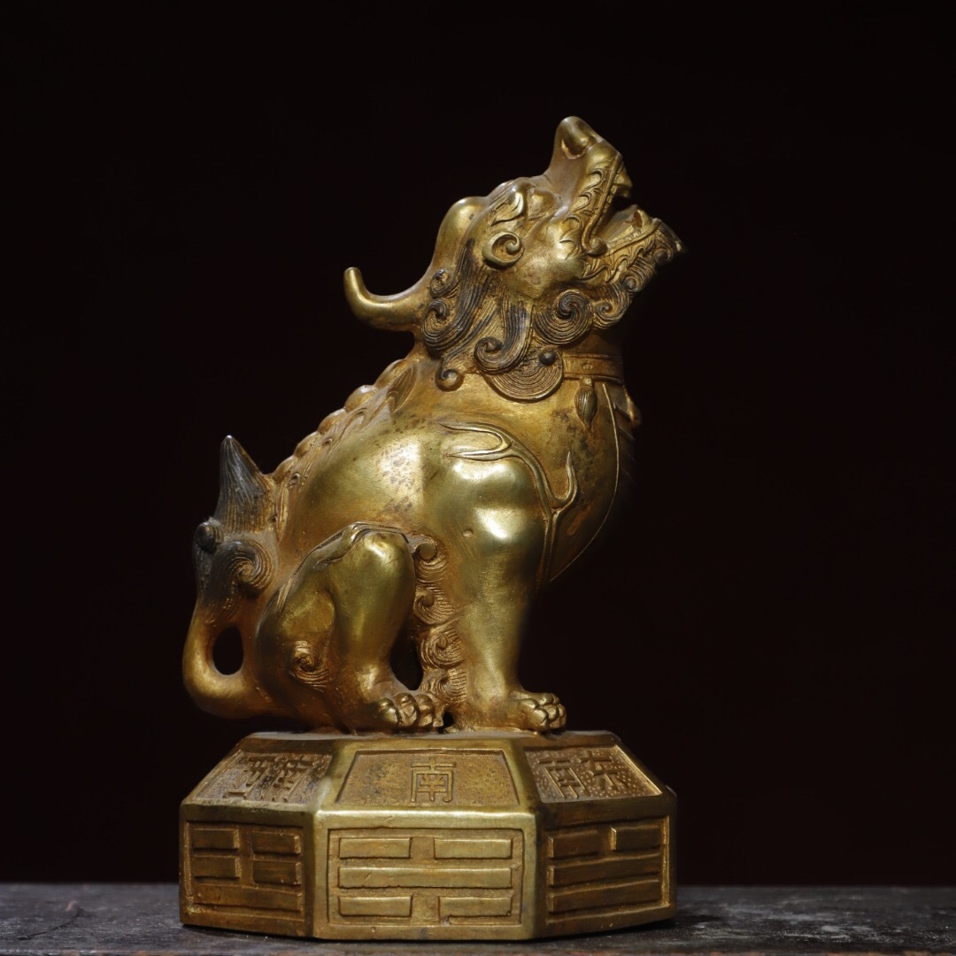 - 【超珍館蔵】銅製 塗金 望天吼 置物 賞物 古賞物 古董品 古美術品 時代物 旧家蔵出 稀少珍蔵品
