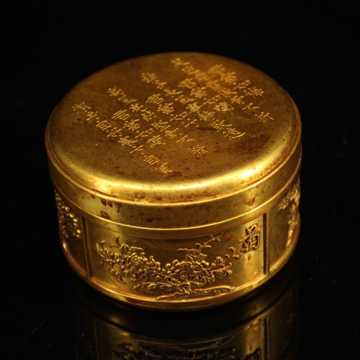 - 蔵友旧蔵出 銅製 塗金 銘文 梅蘭竹菊紋 首飾盒 貴重品 置物 古賞物 中国古玩 中国古美術品