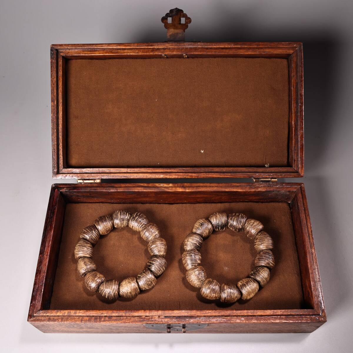 - 清時代 古沈香彫 腕輪 手鏈 手串 念珠 文案置物 置物擺件 時代物 古董品 骨董 旧家藏出 唐物 中国古玩 古美術