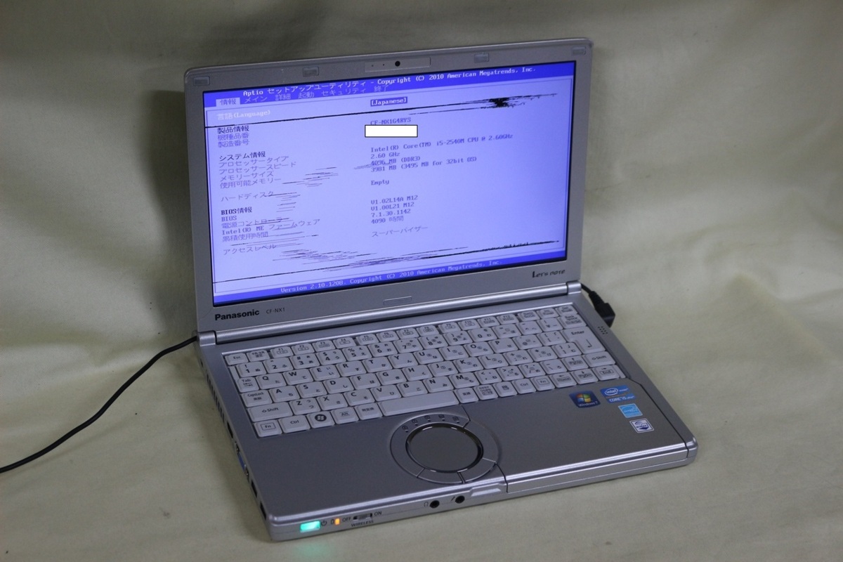 - ジャンク品ノートパソコン Panasonic Let's note CF-NX1 Corei5 メモリ4GB HDD無 12.1inchワイド カメラ内蔵 起動確認済 代引き可