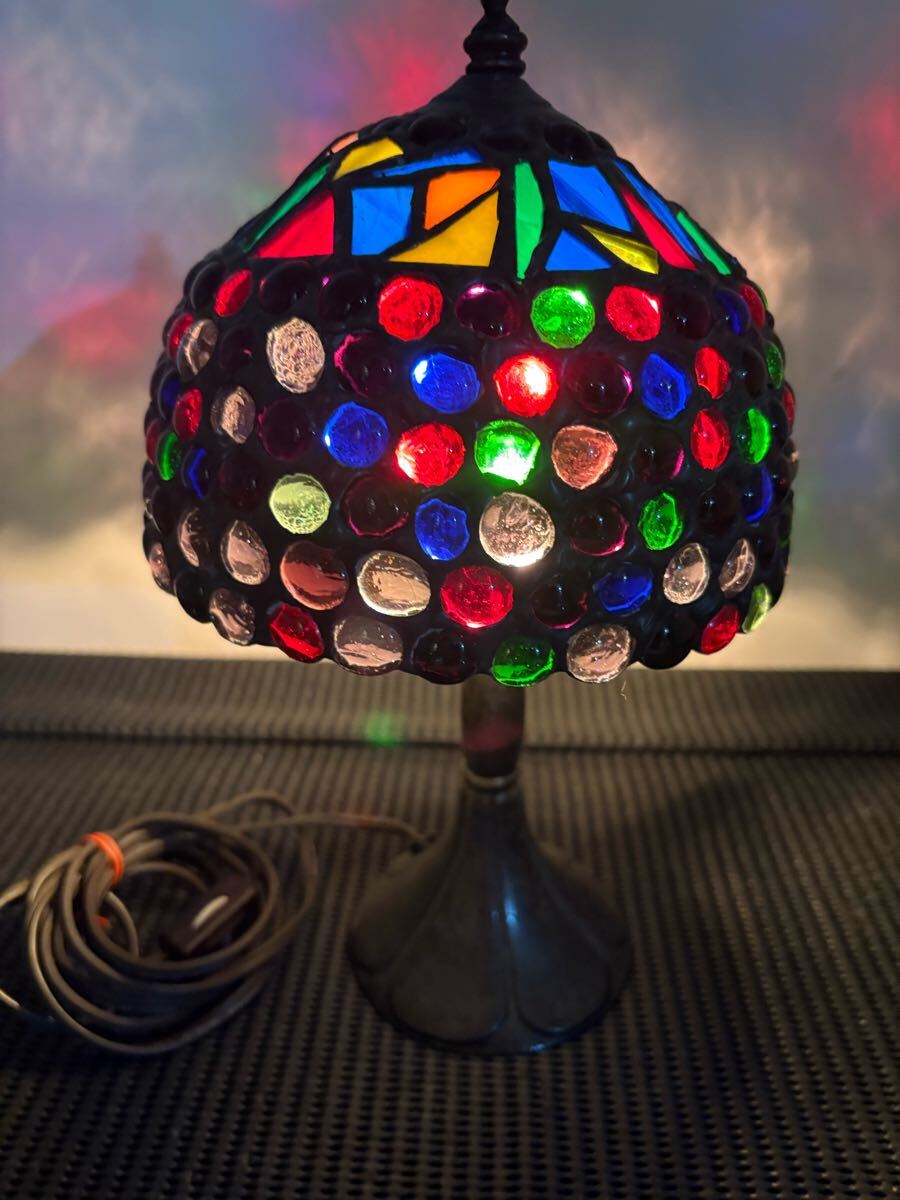 - ★大阪/店舗受け取り可★ステンドグラス ランプ スタンド ガラス玉 ビー玉 ドット 点灯OK アンティーク レトロ インテリア 約高さ28cm★