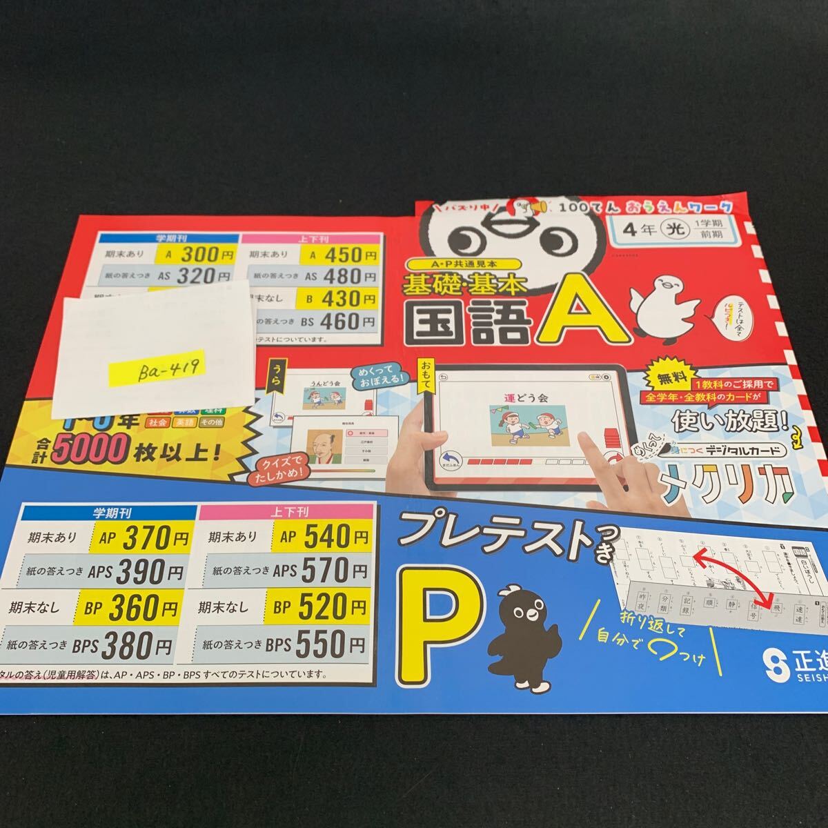 > Ba-419/4年生/1学期/前期/正進社/小学生 国語 算数 英語 社会 理科 漢字 家庭科 テキスト テスト用紙 教材 文章問題 計算/L7/705030