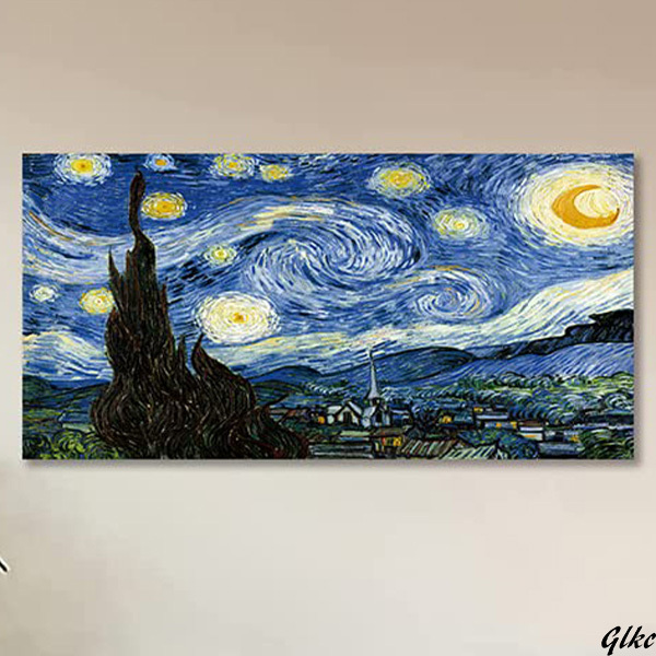 - 【ゴッホ 星月夜 木枠付きアートパネル】 壁掛けアートパネル 30×60cm 抽象画 レプリカ 寝室インテリア 玄関飾り ギフト