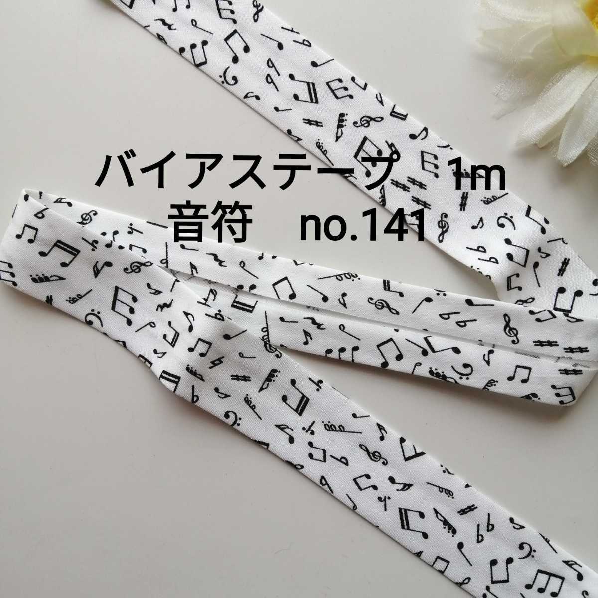 - no.141 白 音符 バイアステープ 長さ約1m 幅2.5cm★手芸用品 洋裁 服飾 ハンドメイド 手作り バイヤステープ 資材 素材 かわいい