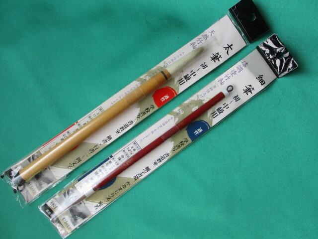 - あかしや 天然竹軸 太筆 知足 3号 漆調塗竹軸(金粉仕上げ) 細筆 芳草 8号 2本セット 未使用品