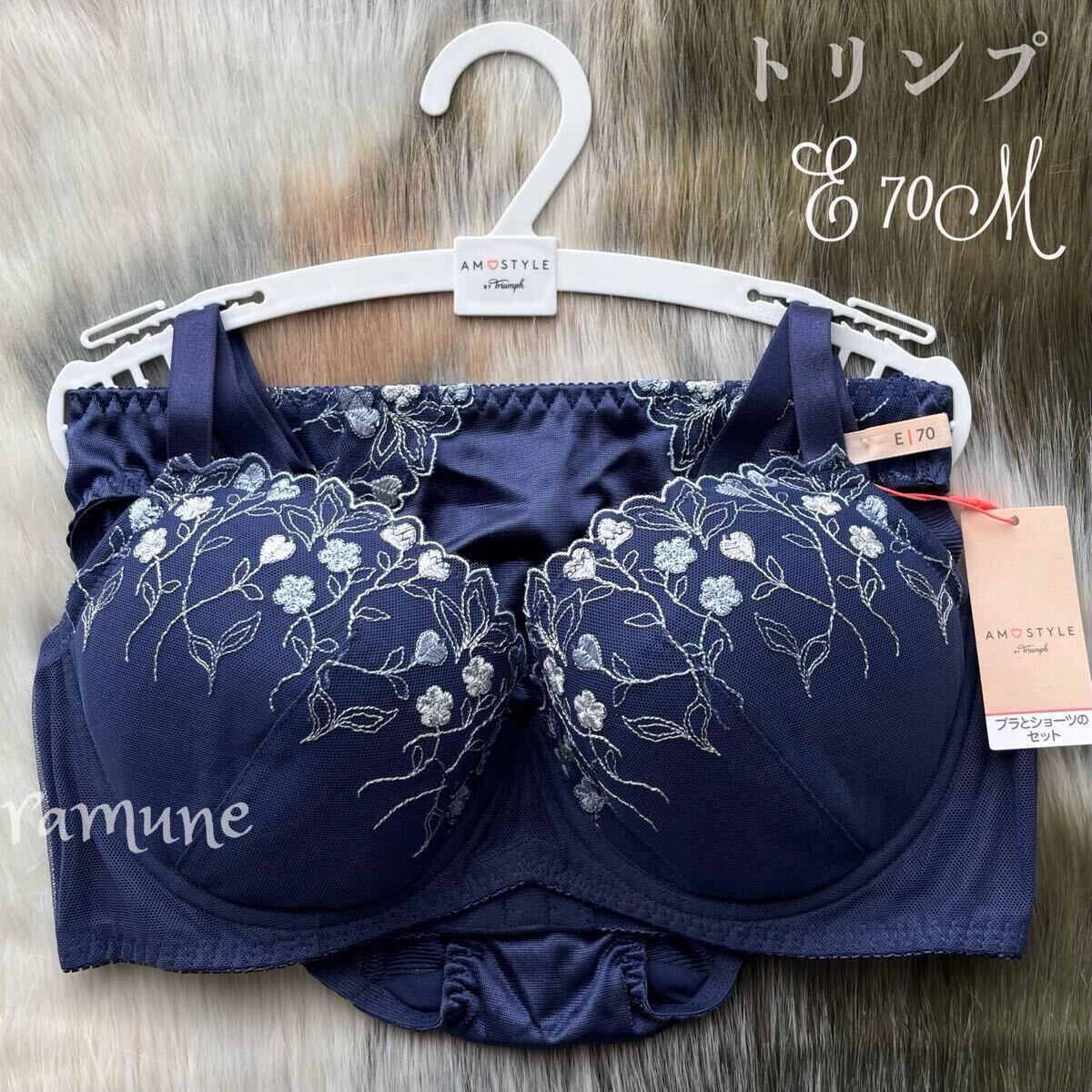 - 【トリンプ*E70M*ネイビー】新品 Triumph ブラ&ショーツセット エントリーコレクション パッド付き 花柄刺しゅう かわいいブラ Eカップ