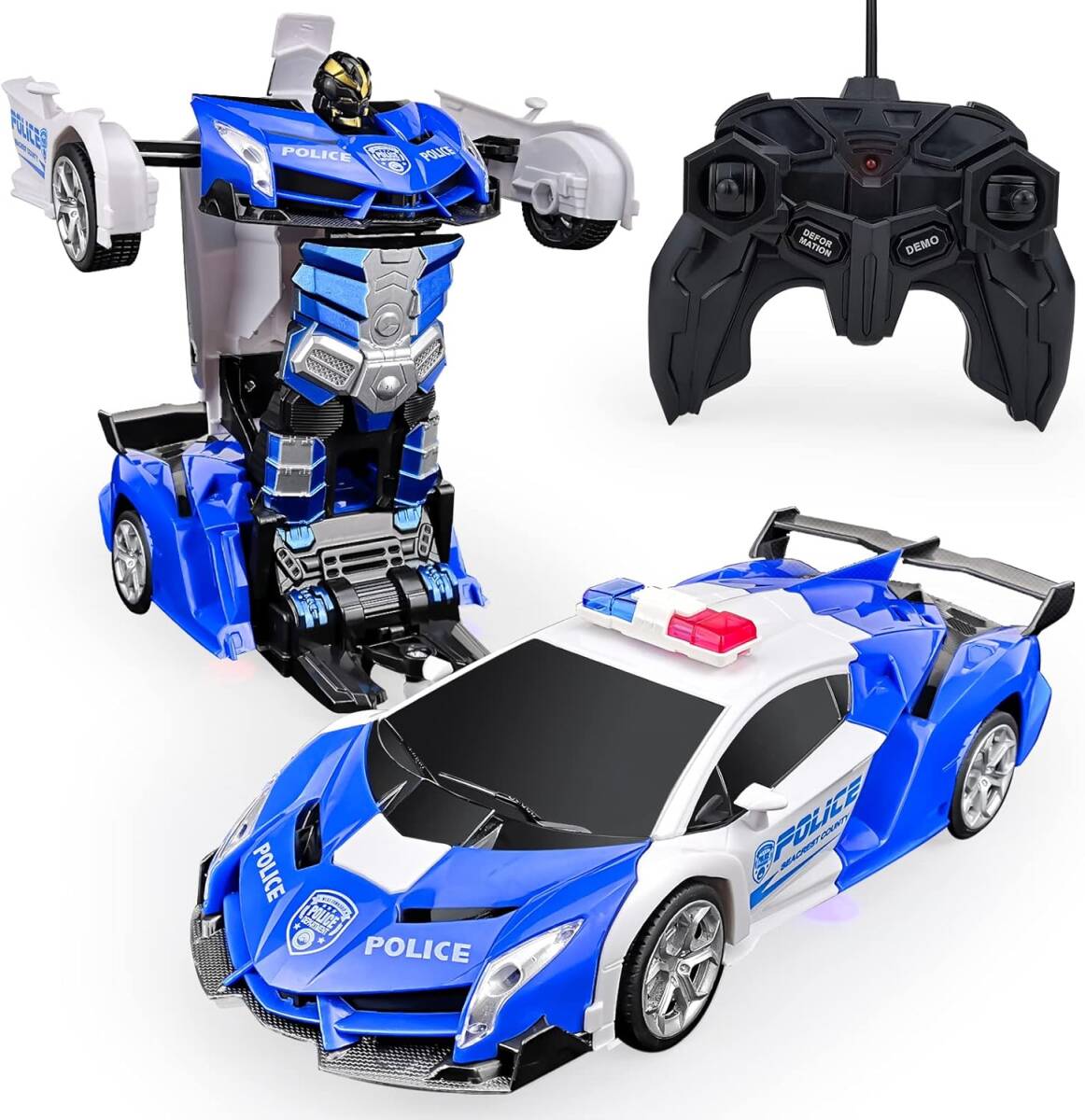 - ラジコンカー 車おもちゃ スタントカー 警察車 充電式 ロボットに変身(青)