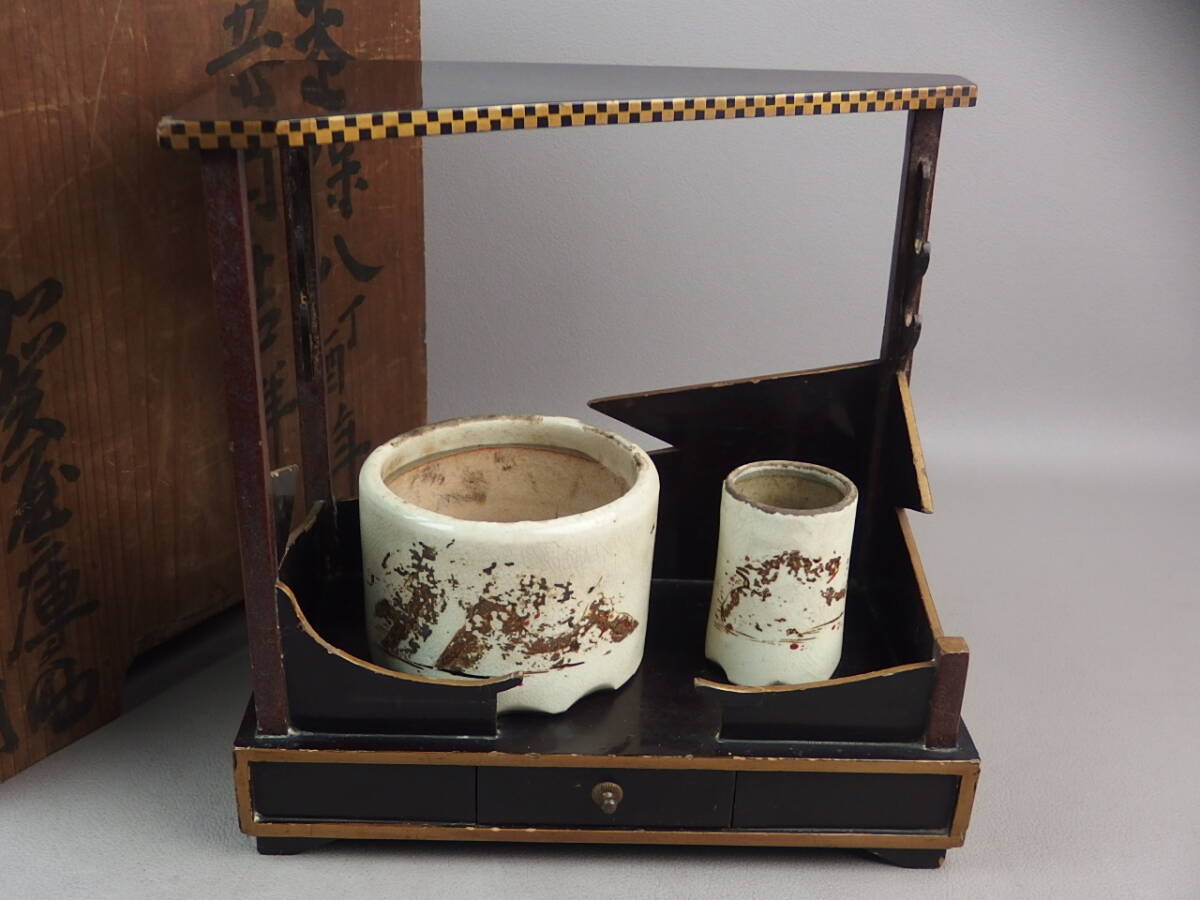- 【骨董・茶道具】★時代 古民芸 喫煙具★★市松模様煙草盆 問屋盆 gk081stl.7 喫煙道具