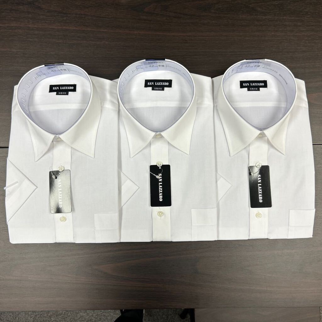 - 半袖形態安定ドレスシャツ 3枚セット 白無地 42cm