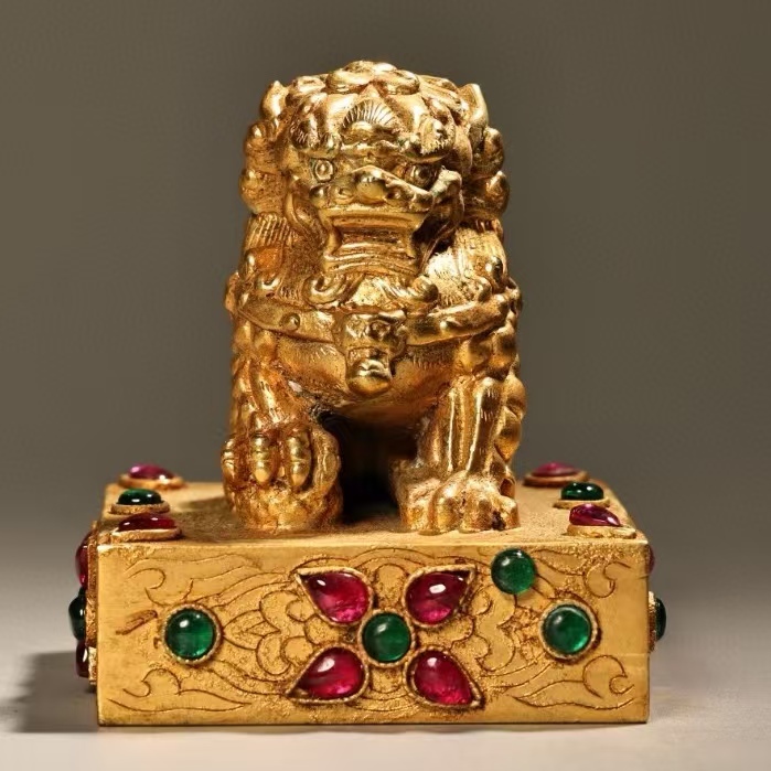- 印鑑 清代 秘蔵 宝石王侯獅子印を象眼する 皇室の国王の玉璽 文臣武将印鑑 印鑑の方 文房具 古印材 銅製 銅琉金 唐物 收蔵品 時代物 古置物