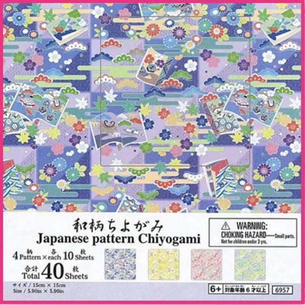 > 【送料無料:ちよがみ/おりがみ:40枚:和風:No6】★素材の綺麗な ちよがみ★4柄X10枚x1/40枚x1セット:15cm おり紙★折紙 折り紙