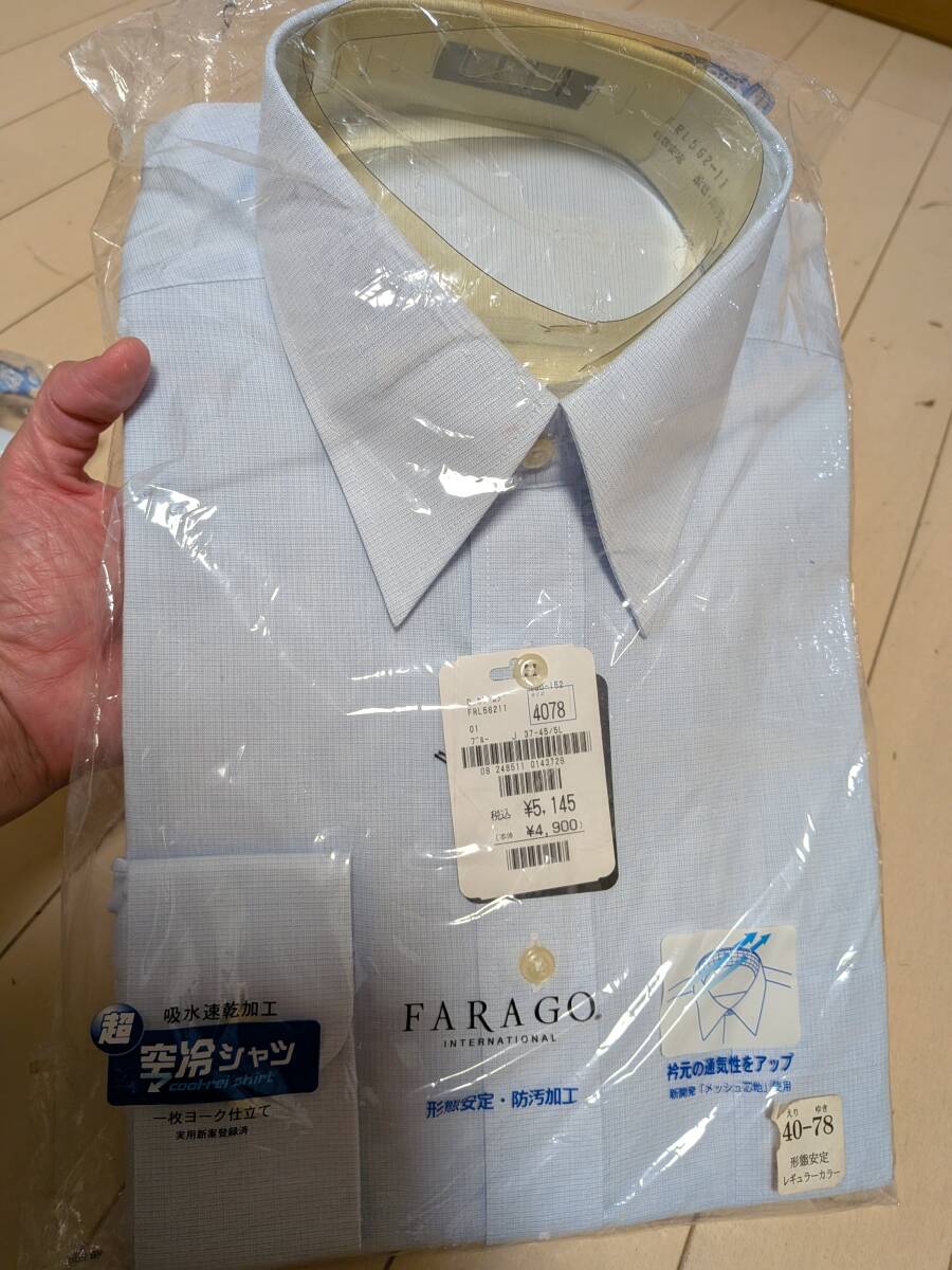 - 新品 長袖 冷感 えり40 ゆき78 形態安定 防汚加工 シャツ ビジネス 吸水速乾 薄水色 ブルー 青 М L