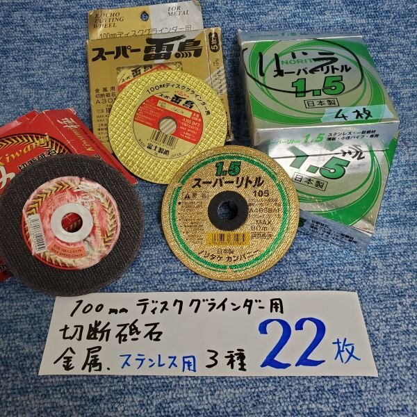 > 【アウトレット品】 NORITAKE SANKO 他 切断砥石 ステンレス用 金属用 100㎜ディスクグラインダー用 22枚セット 丸のこ sp-031-221