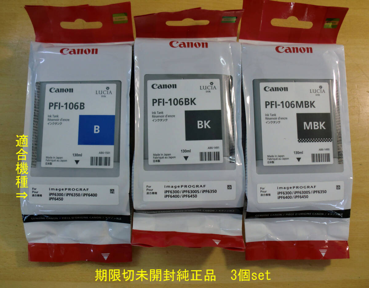 - ◆ 送料込 CANON 純正インクカートリッジ PFI-106[B+BK+MBK]各1個 3個set 未開封 期限切JUNK出品