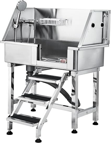 - 業務用 ドッグバス ステンレス製 犬用 猫用 浴槽 ペット お風呂 大容量 シャワープール 蛇口付き 厚い 滑り止め 伸縮式階段 家庭用