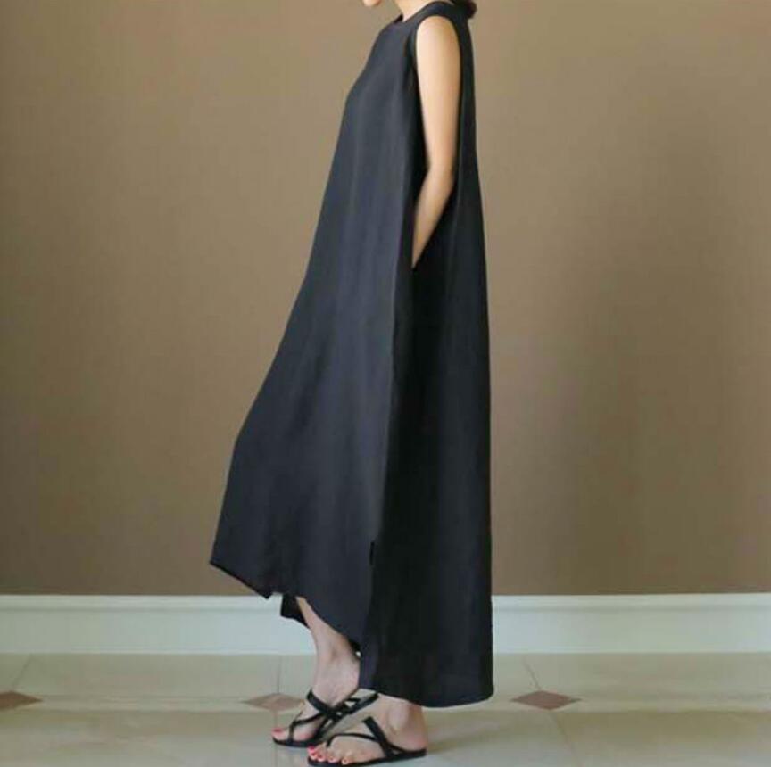 > 新品 人気推薦 / ワンピース リネンワンピース 亜麻混 夏 ノースリーブ きれいめ体型カバー カジュアル きれいめ マキシワンピ / ブラック