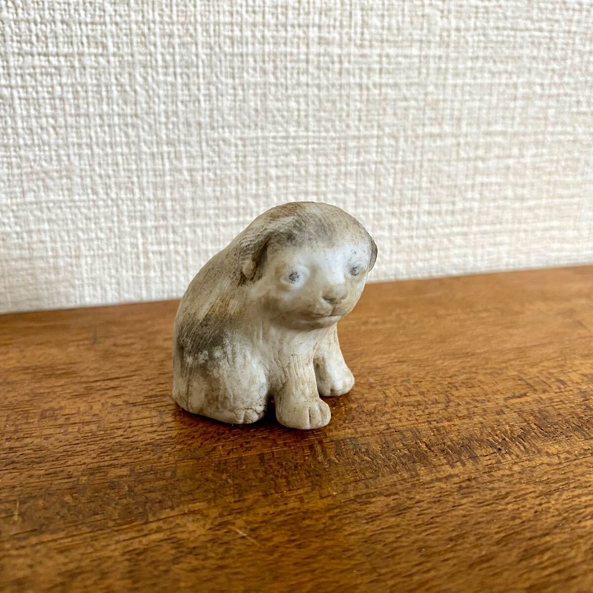 - 当時物 瀬戸焼 陶器製 犬の置物 / 高さ約4㎝ 豆人形 子犬 郷土玩具 工芸品 民藝