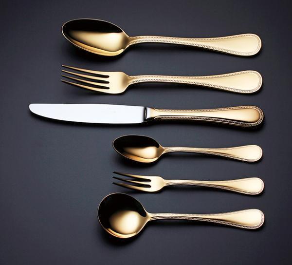 > ★ラッキーウッド24金仕上フレンチアクセントカトラリー(6種類)各2本計12P高級18-10ステンレス使用24金仕上げ日本製新品