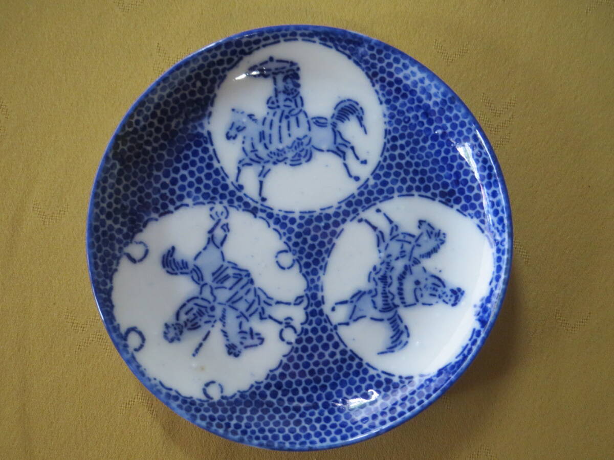 - 印版型紙 手塩皿 西洋人 乗馬三景 図 b