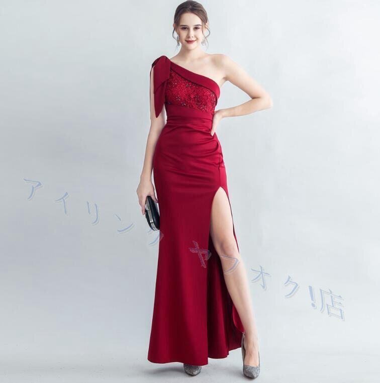 - 新品★レディースワンピース 高品質 大人sexy 二次会ドレス 結婚式ドレス ワンショルダー 赤