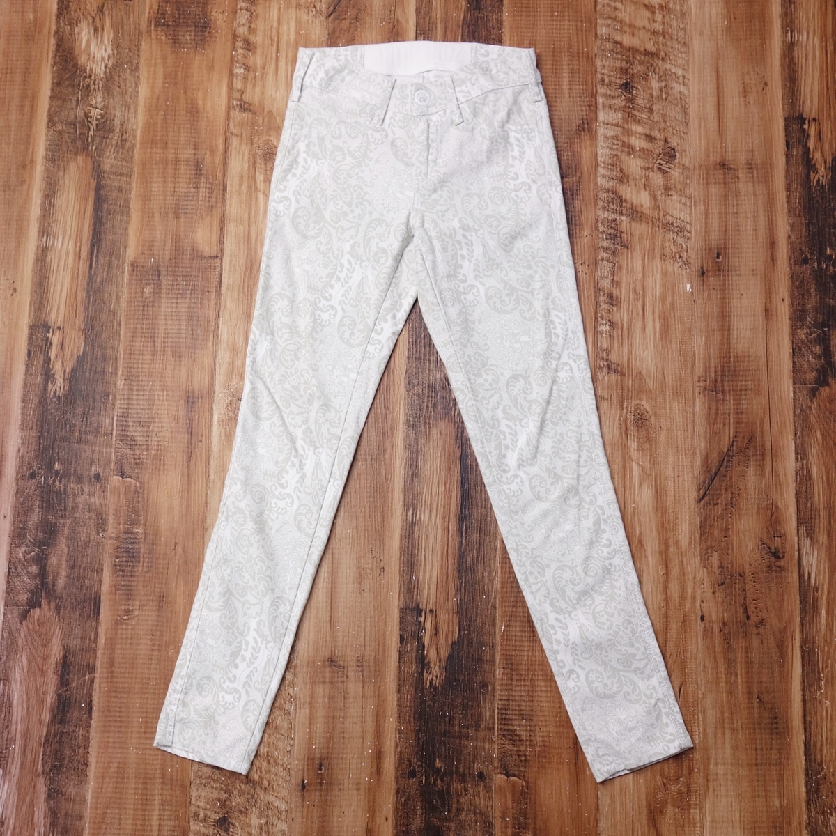 > 美品 サムシング SOMETHING ストレッチスキニーパンツ レディース ペイズリー柄 Sサイズ ホワイト系ペイズリー柄 KP3