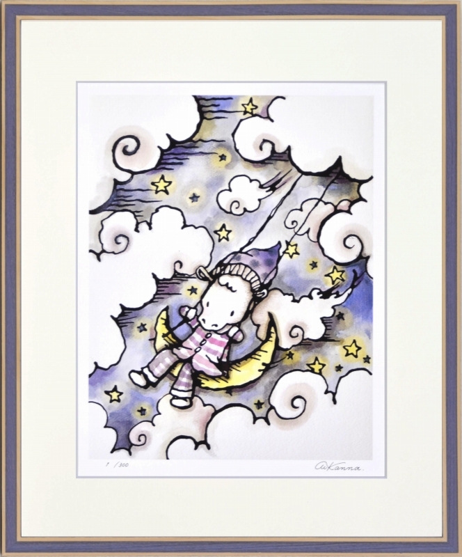 - ジークレー版画 額装絵画 KANNA 「月のぶらんこ」 四ッ切