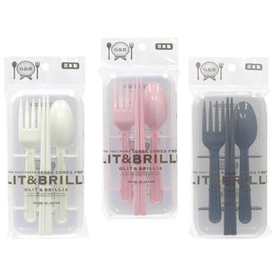 - G&B トリオセット 【ピンク】 スプーン フォーク お箸 セット お弁当用 持ち歩き 100円均一 100均
