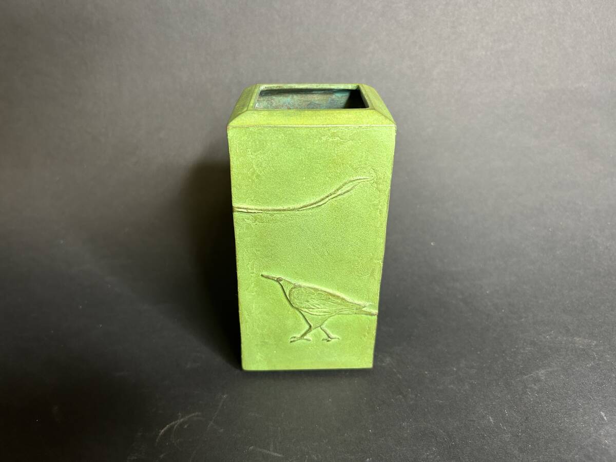 - 高岡銅器 須賀松園 鳥獣文 花生 共箱