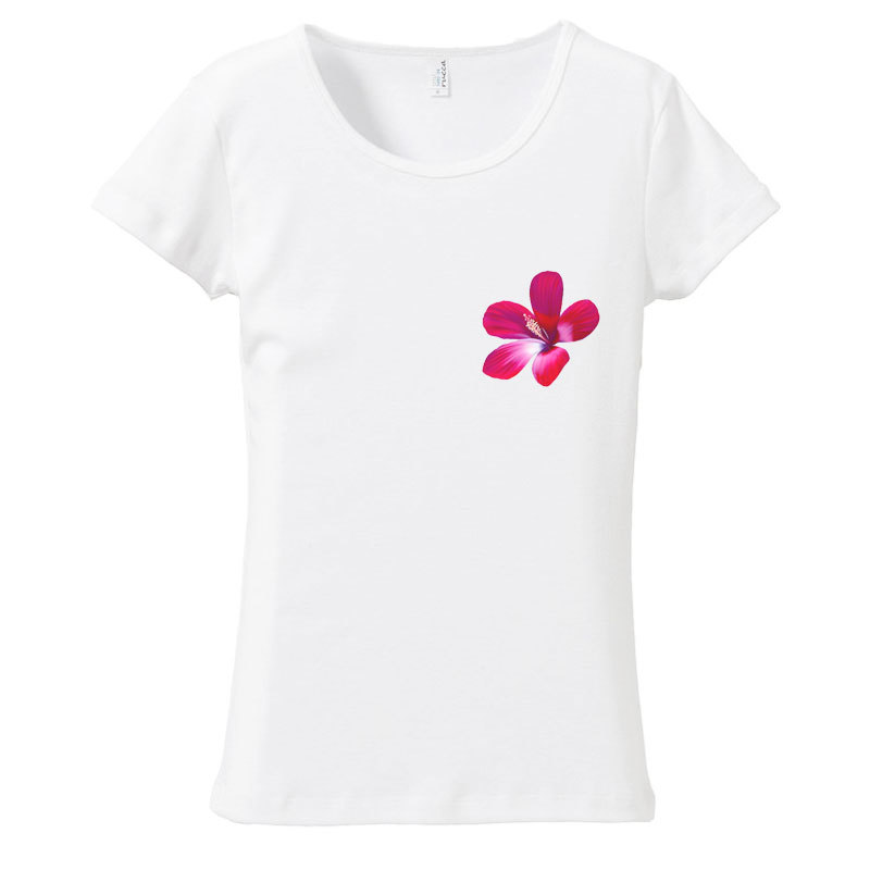 - (M)ホワイト【tf109】/*サークルハイビスカスプリント*メール便発送ハワイフラダンスTシャツ半袖送料無料レディース南国ロゴハウラ