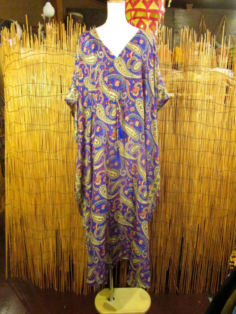 > 【送料込み/SALE】③新品*ポリエステル素材*ゆったりサイズ*サリー生地*ガラベーヤ*ポンチョ風*マキシ丈*ワンピース MAJAM