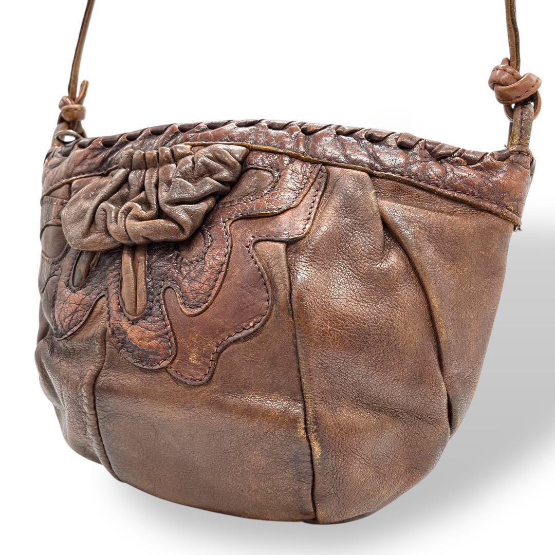 - IBIZA イビザ ショルダーバッグ レザー ブラウン パッチワーク
