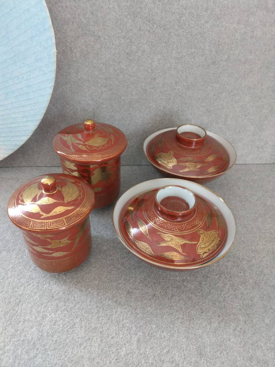 - 湯呑み茶碗 夫婦湯呑み茶碗 飯椀 永楽 深川六方園 赤絵金彩鳳凰
