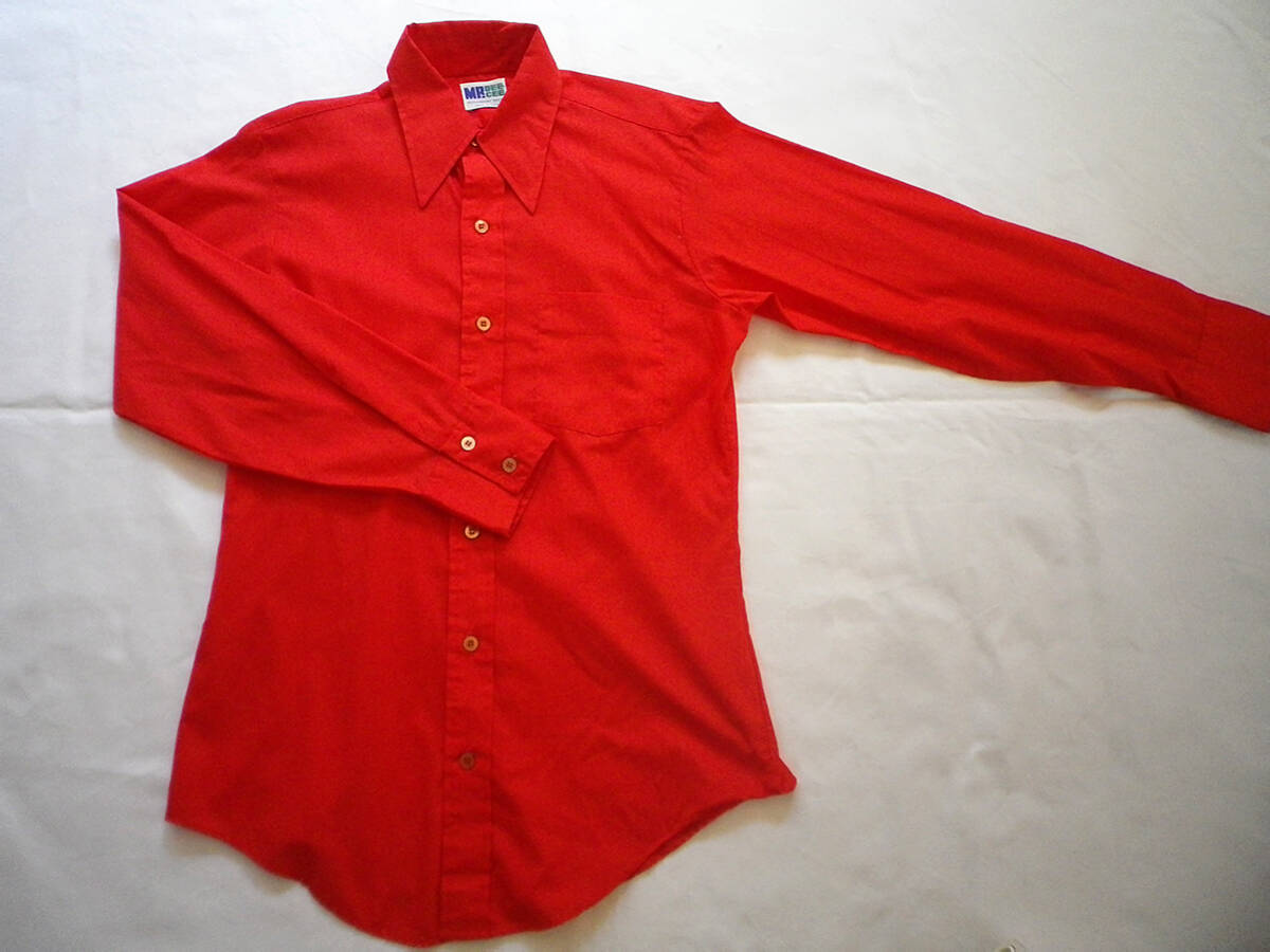 - ■古着■MR.DEE CEE PERMANENT PRESS 長袖シャツ メンズSサイズ相当/レッド■Made In USA ◆B