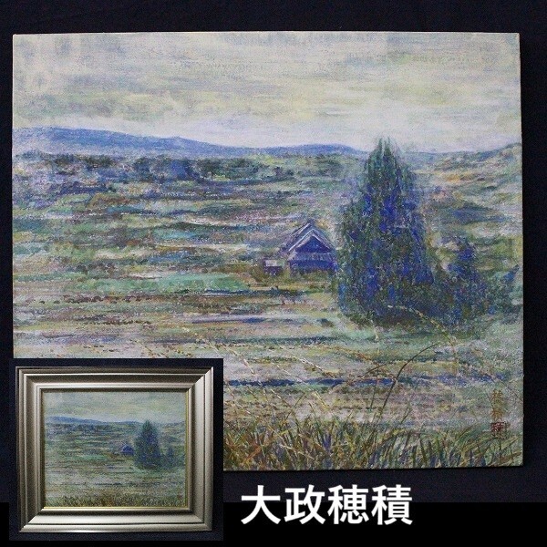 > 大政穂積 「明日香の里」 日本画10号 岩彩 真作 雪景風景画 共シール 師:小野竹喬 日展会友 D900