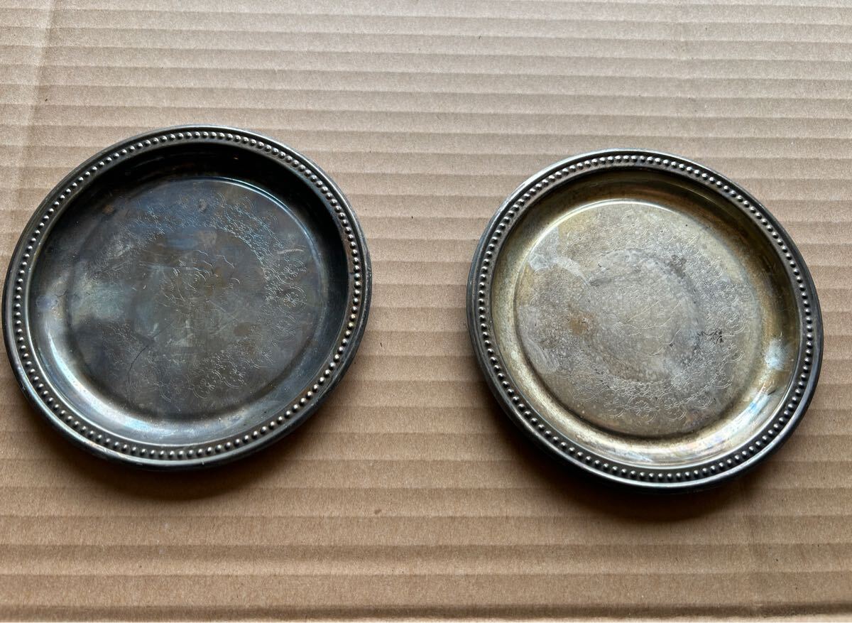 - 皿 アンティーク コレクション 雑貨 銀色 何製? 2枚 蔵保管品 ヴィンテージ 食器 現状品