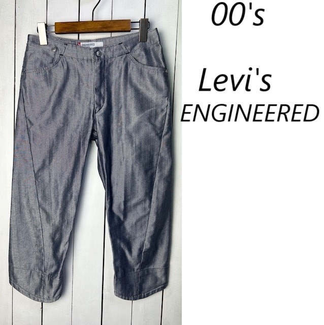 - 美品 00s 初期 Levis ENGINEERED 立体縫製クロップドデニムパンツ 29 シルバー リーバイス エンジニアード ヴィンテージ 日本製 薄手 ●490