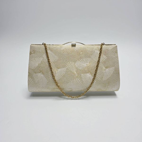 - 和装バッグ バッグ 小物 着物 波 ゴールド 単品 結婚式 祝い事 ゴージャス 中古品 M-004