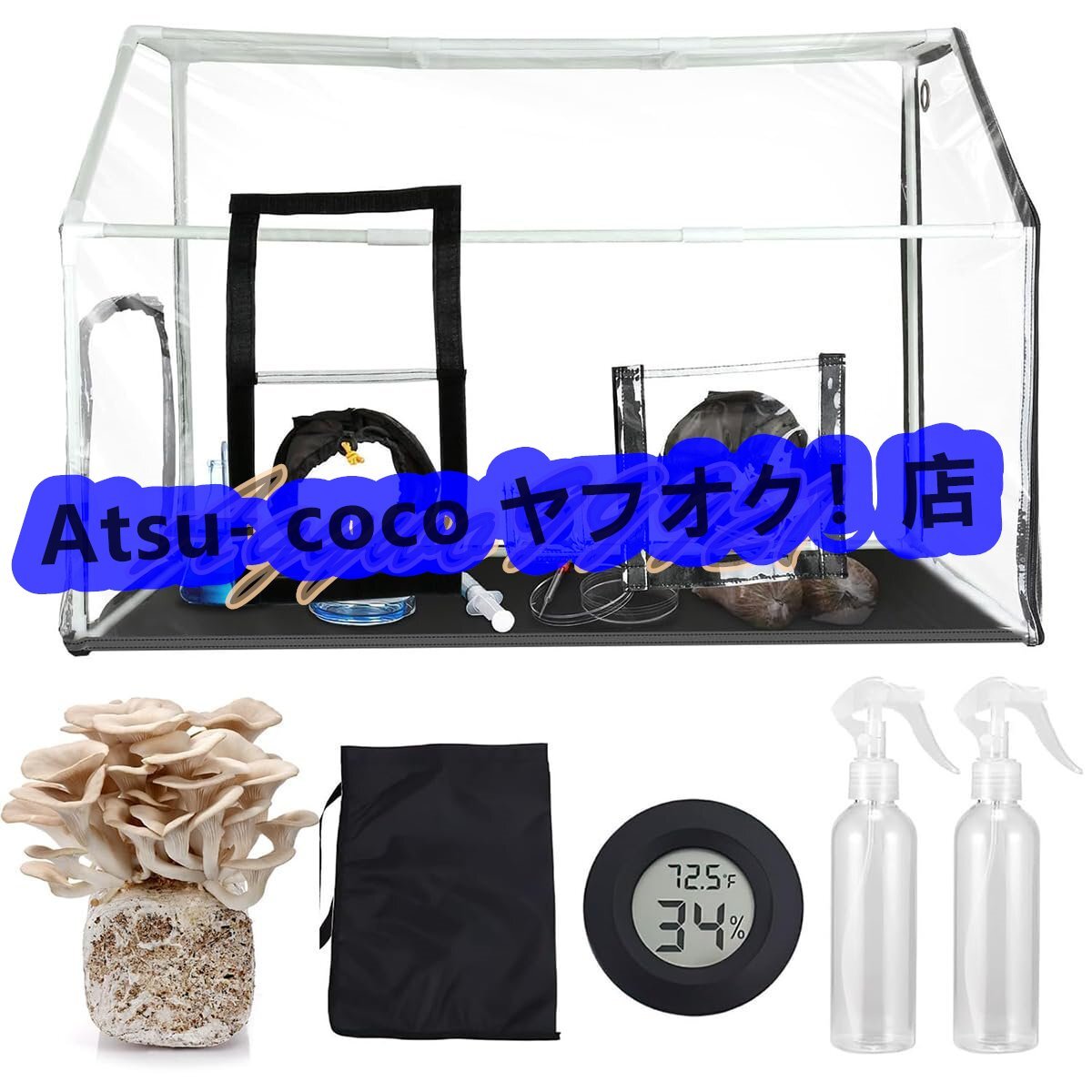 > キノコ栽培静止エアボックス、ポータブルキノコモノタブキット、噴霧器2台と温度計付きキノコ栽培コンテナテント、90 x 60 x 60cm