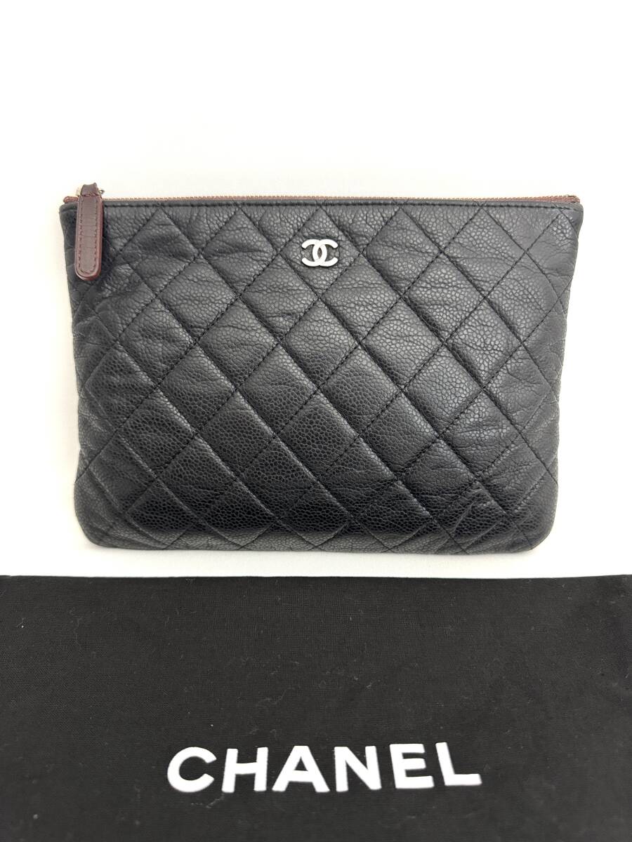 - 7F0801【本物保証】シャネル ポーチ クラッチ バッグ マトラッセ キャビアスキン レザー ブラック ココマーク CHANEL