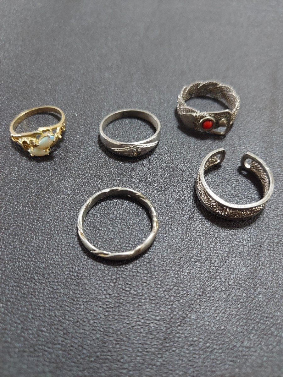 - ヴィンテージ 昭和 リング 指輪 5個 アクセサリー シルバーカラー 送185 個性派 ブロカント 古いアクセサリー 色石