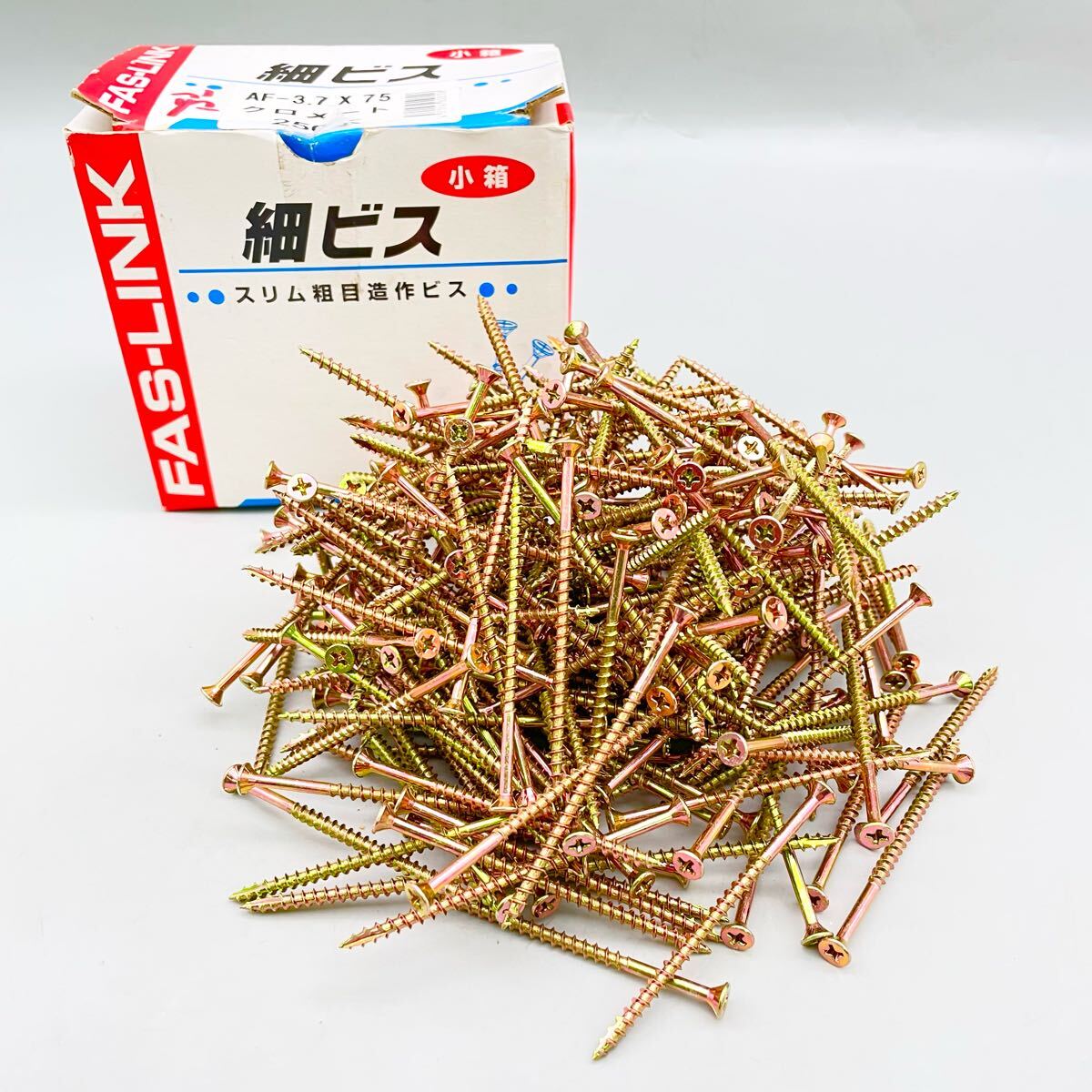 > [未使用品] ファスリンク AF-3.7×75 細ビス 小箱 スリム粗目造作ビス 大量 200本以上 クロメート 大工 道具 ねじ 金物屋 在庫 まとめ売り