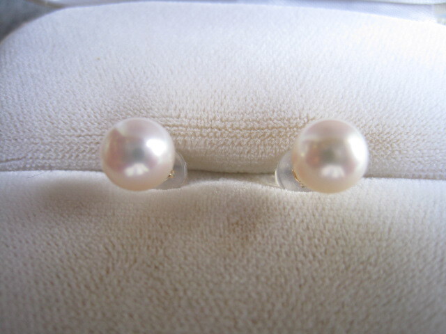 - [SAMU]素敵!!照り綺麗天然あこや真珠6.8mm~7.0mm k18金ピアス 美品!