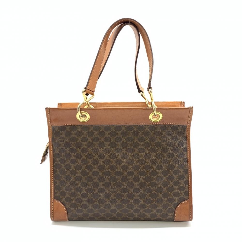 - CELINE セリーヌ マカダム ハンドバッグ PVC レザー ブラウン ヴィンテージ ファスナー開閉 レディース 管理RT42897