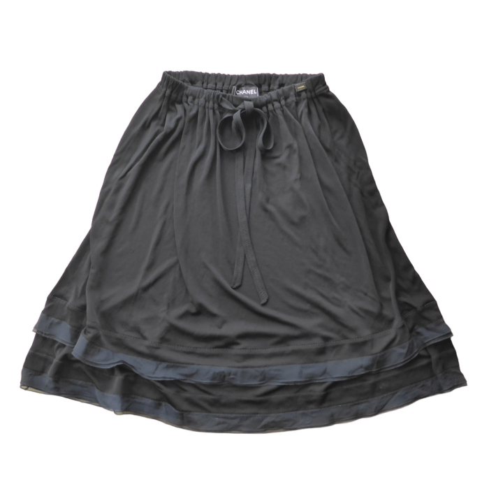 > シャネル (CHANEL) フリル ティアードスカートレーヨン CC ブラック #34 ウエア(中古)