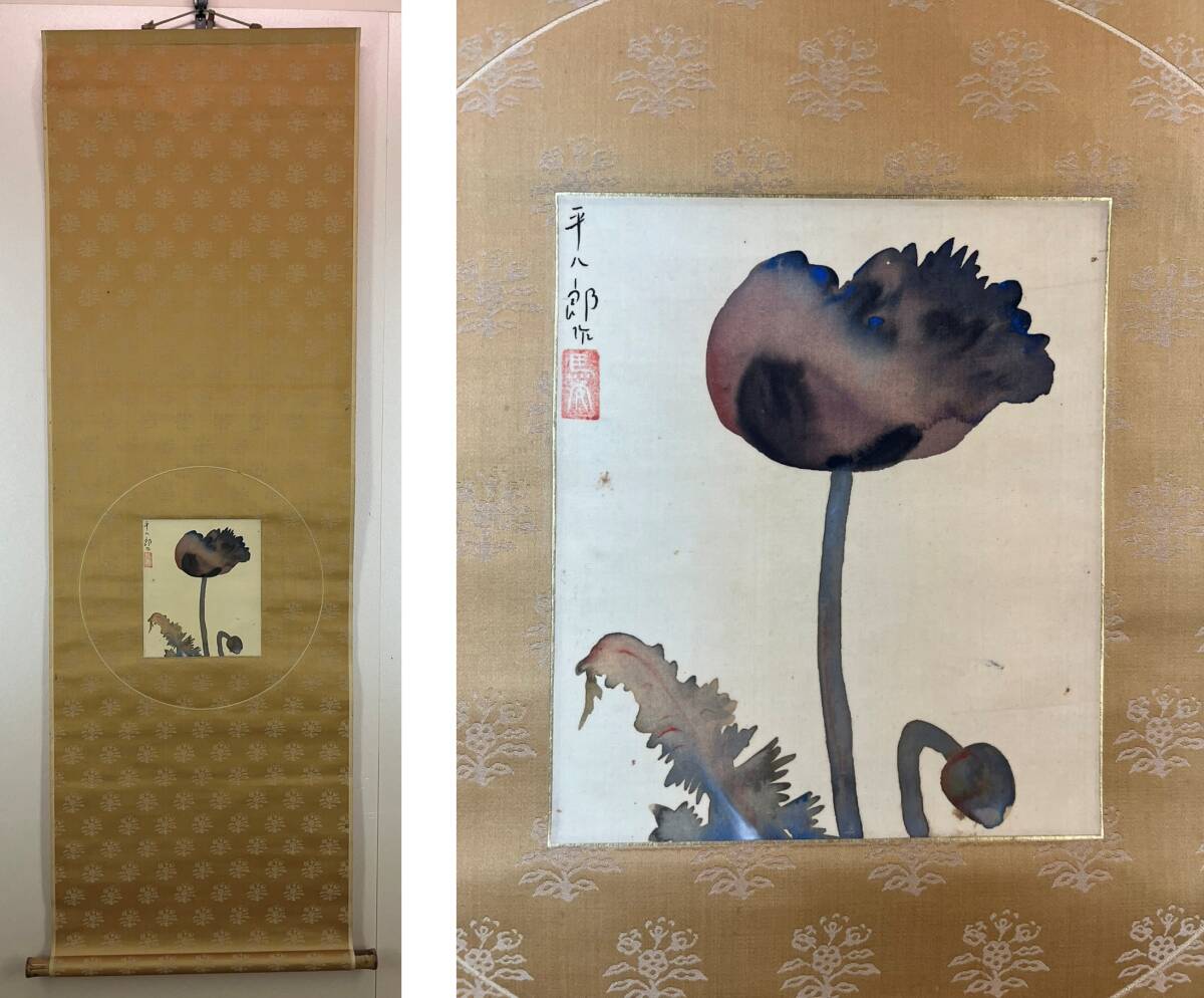 - 【 真作 福田平八郎 芥子図 掛け軸 】大分 日本画