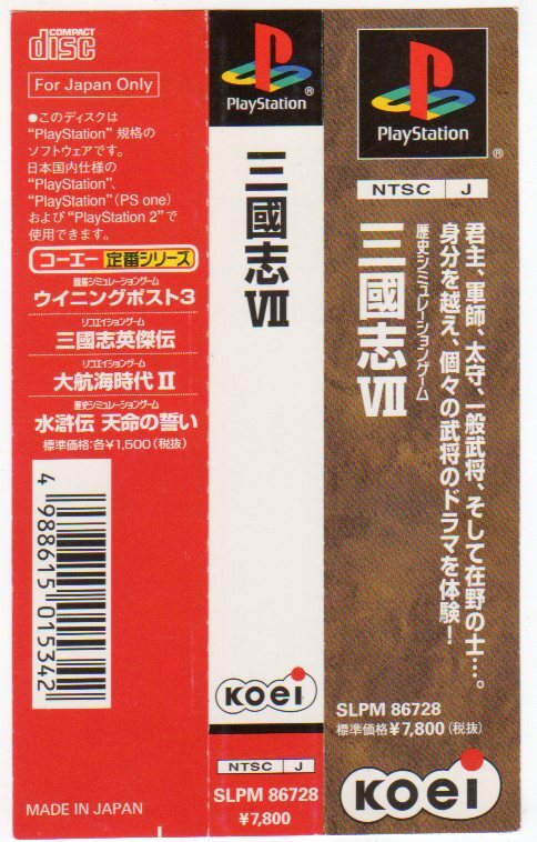 - PS◆三国志7 三國志Ⅶ 帯のみ