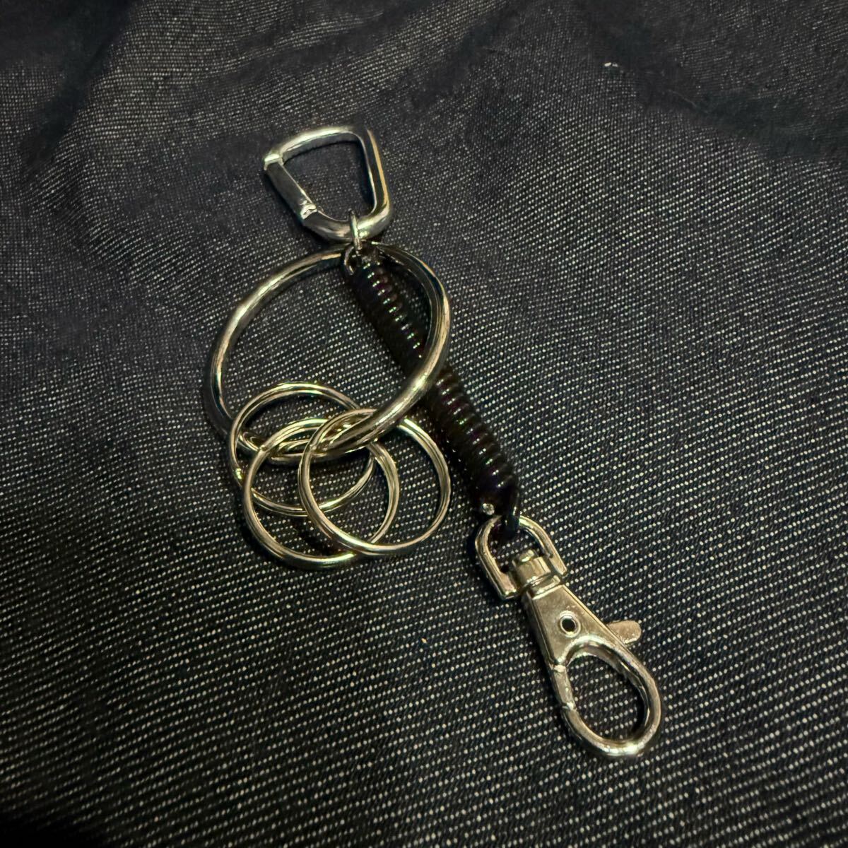 - カラビナ 40mm 丸カン キーホルダー キーリング 3連リング コイルチェーン スプリングロープ ハンドメイド メンズ レディース