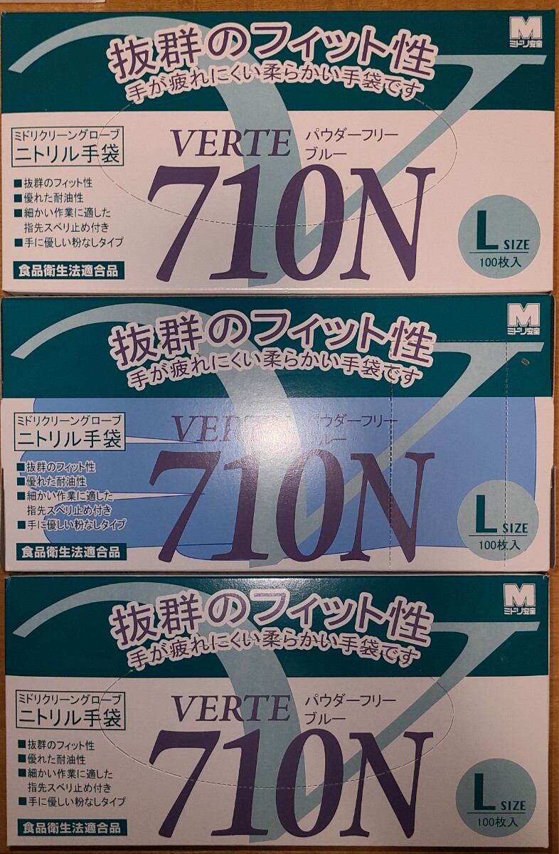 - 【3箱セット】☆ニトリル手袋◇ミドリ安全☆VERTE710N♪Lサイズ☆新品☆⑧