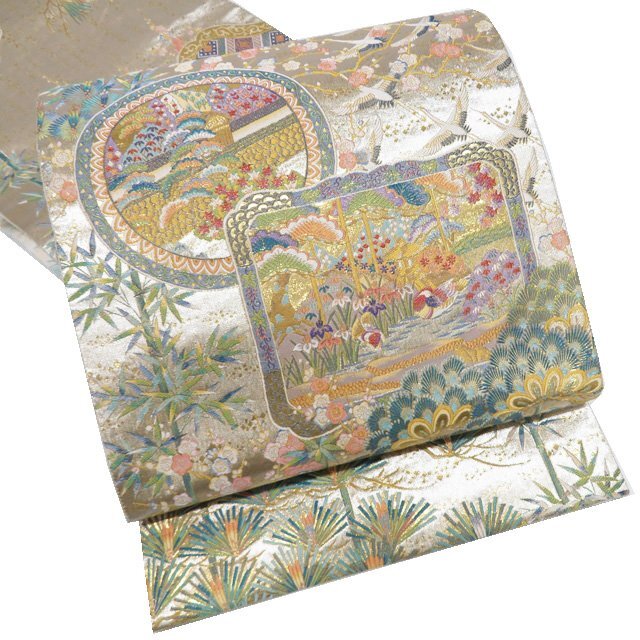 - 袋帯 中古 リサイクル 正絹 フォーマル 仕立て上がり 全通 美久露錦 加賀 花鳥の図 松竹梅 箔糸 多色 金 きもの北條 A1206-12